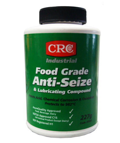 CRC Food Grade Anti-Seize & Lubricating Compound is a premium anti-seize compound with PTFE, specifically formulated for use in applications where incidental food contact is possible. It tenaciously adheres to metal surfaces providing protection from destructive metal to metal contact on sliding or rotational contact surfaces.