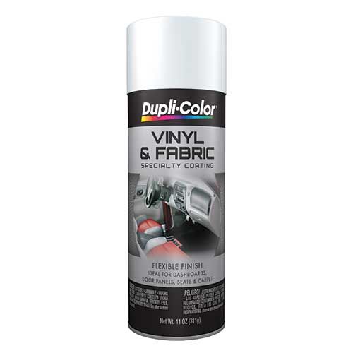 Dupli-Color® Vinyl & Fabric Coating (WHITE) is perfect for restoring or customizing your interior vinyl seats, dash boards, door panels, shifter boots and consoles. Formulated with a maximum adhesion promoter so there's no need for primer. Dupli-Color Vinyl & Fabric Coating wont crack, peel or chip.