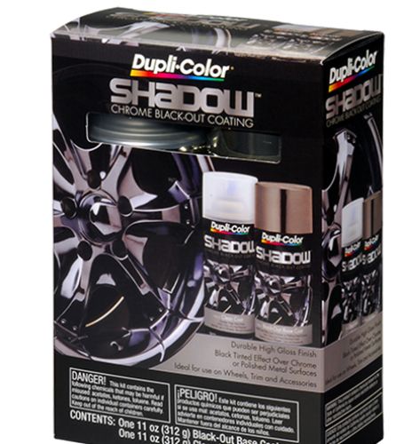 Dupli-Color® Shadow® Chrome Black-Out Coating is a two-can system that creates the popular look of black chrome on polished metal or chrome surfaces for cars, trucks and motorcycles. The system includes a translucent, black base coat that casts a dark shadow effect. The clear top coat is for added gloss, depth, and protection from the elements. Shadow® is resistant to brake dust, road abrasion, chipping, and fading, making it ideal for chrome wheels, bumpers, interior/exterior trim, accessories, and under hood components.