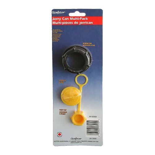 Includes self venting spout, screw cap with child resistant closures, stopper and vent cap. Brightly coloured for easy identification.