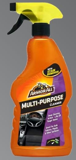 Use ARMOR ALL® Multi-Purpose Cleaner on the inside of your car to clean floor mats, carpet, dashboards, door panels and vinyl and fabric seats. It is also ideal to use on the outside of your car for cleaning bumpers, grills and engine surfaces.