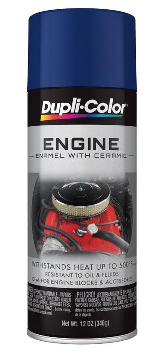Dupli-Color® Engine Enamel (FORD DARK BLUE) contains Ceramic Resins for maximum heat dissipation and gloss retention. The resins offer protection from exposure to excessive heat and automotive fluids. Excellent for under-the-hood applications, Dupli-Color Engine Enamel will perform to the most rigorous standards of racing, street rod, and vehicle restoration enthusiasts. This durable formula resists temperatures up to 500°F intermittently and produces a superior finish that will not blister, flake, crack or peel.