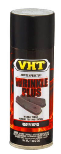 VHT Wrinkle Plus™ (BLACK / FLAT FINISH) combines strong colors with a deep rich texture for a custom look. It is temperature resistant to 350°F (177°C) and is ideal for adding a touch of personal styling to almost any metal surface. VHT Wrinkle Plus™ resists color fading, grease, degreasers and severe weather conditions. This tough, durable finish is extremely resistant to rust, corrosion, chipping and cracking.