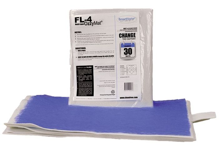 The OzzyMat FL-4 has 4 white layers and 1 blue layer. The white layers on the mat trap any particulate larger than 50 microns and should be peeled at least once a week for optimum performance. The blue layer is the support structure that contains the microbes and delivers them into the system. These microbes migrate from the OzzyMat into the Ozzy Juice located in your SmartWasher tank and break down organic waste.
