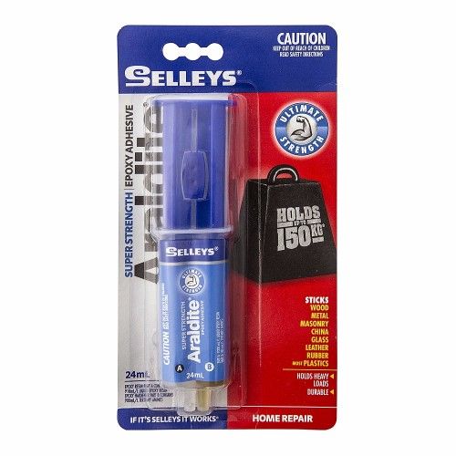 For the most heavy-duty repairs, this product provides a super strong bond and a 5-minute set time. Araldite Super Strong Epoxy Adhesive is designed for load bearing repairs, broken furniture, woodworking or concrete repair with a crystal-clear finish.