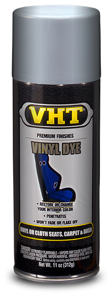 VHT Vinyl Dye™ (CHARCOAL GRAY / SATIN FINISH) for vinyl and carpeting restores or changes the color of any vinyl upholstery, seats, and trim, or the "short nap" carpeting found in today's cars, boats, and watercraft. It is ideal for use on stiff or pliable vinyl, simulated leather, or plastic. It is extremely resistant to cracking or fading. Careful preparation is essential and all traces of dirt, silicone products, vinyl and rubber protectants, oils, and greases must be removed. Incomplete preparation will not produce a satisfactory result.