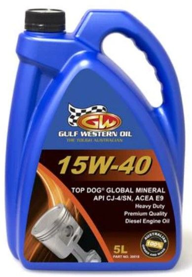 GULF WESTERN TOP DOG MINERAL OIL 15W-40 (30518) 5L EA