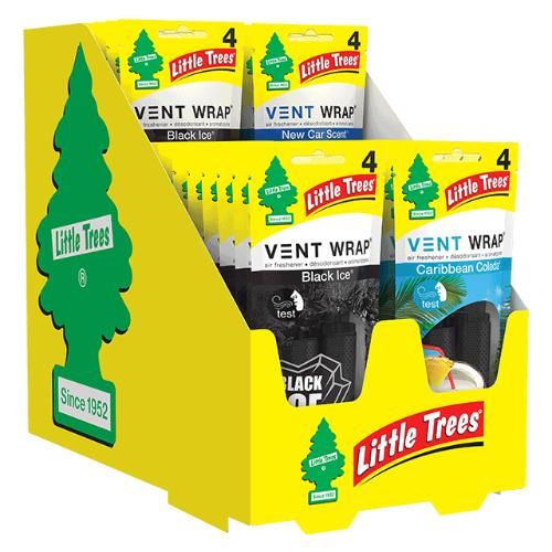 32-piece counter display featuring top Little Trees scents in discrete, long-lasting Vent Wraps.