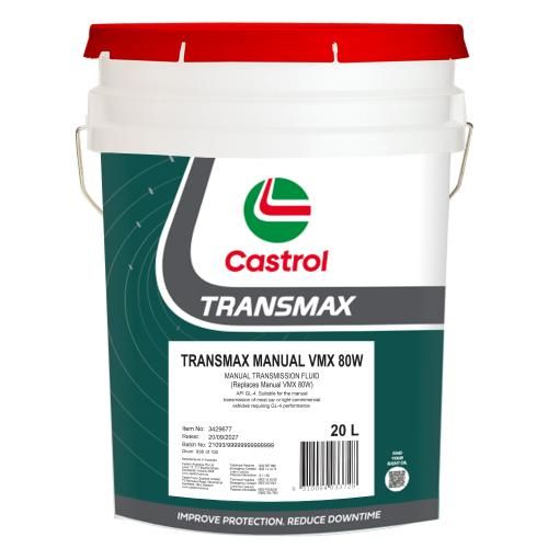 CASTROL MANUAL VMX 80W (20L) - A manual transmission fluid of advanced design especially developed to provide easier gear changes over a wide temperature range.