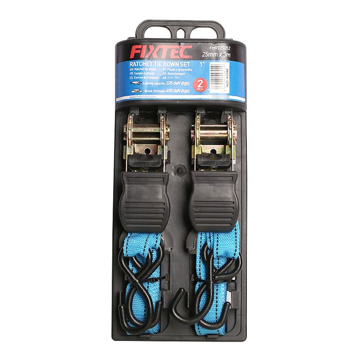 FIXTEC RATCHET TIE DOWNS 5X25MM 225KG EA/PAIR